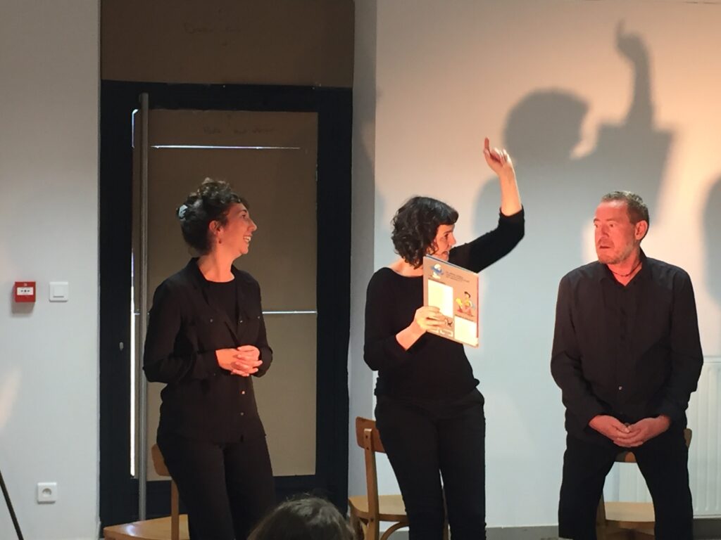 Dimanche 12 octobre la Bibliothèque municipale a accueilli pour son animation annuelle, 3 comédiens de la troupe lyonnaise LiLy. Ce spectacle gratuit était financé par le Départementement du Rhône dans le cadre de la Médiathèque départementale en charge du plan lecture publique. Environ 25 personnes ont pu assister à un spectacle très original. Les comédies prenaient un livre choisi dans la bibliothèque par le public et (sans l’avoir lu) improvisait une sketch sur le titre. Une performance d’acteur tout à fait remarquable qui a eu la faveur du public.