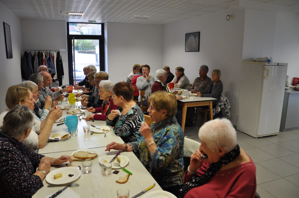 Jeudi 6 novembre le Club des Bruyères s’est réuni exceptionnellement dès midi pour partager un repas collecif dans la salle associative. La journée s’est poursuivie par la nomination du bureau te la remise d’un petit cadeau à Maurice et Christiane, les deux conscrits de 80 ans de l’association.